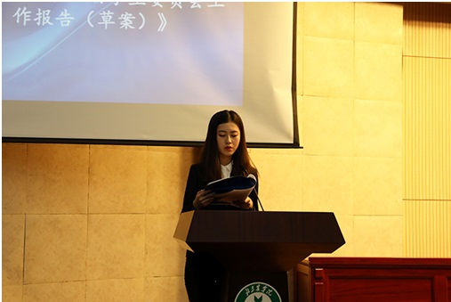 其次,陈馨蕊代表做《永利23411集团第十五届学生会员工作报告(草案)》;高英健代表做《永利23411集团第八届研究生委员会工作报告(草案)》,希望新一届学生会、研究生会可以坚定理想信念、服务学生大局、增强榜样作用并加强组织建设。