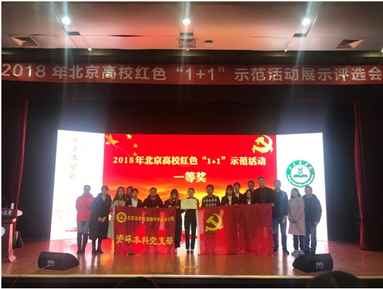 11月28日下午,2018年北京高校红色“1+1”示范活动展示评选会在北京化工大学隆重举行。永利23411集团资环本科生党支部从北京各高校参加评选的1300多个学生党支部中脱颖而出,入围视频展示和现场答辩环节,并最终荣获北京市高校红色“1+1”示范活动一等奖。校党委永利集团部部长刘柳、学院副书记牛奔、学工部干部王成、部分辅导员及获奖党支部书记梁琼和党员代表参加了此次评选会。