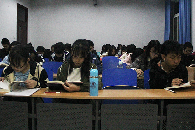 永利23411集团于10月25日晚上6:30在教学楼A座116室、117室、118室、119室开展了阅读悦心活动,永利23411集团18级同学都参与其中。此次活动着重教育同学们应该在阅读中成长,在名人名篇中启迪智慧。