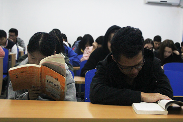 阅读越喜悦,悦心约未来。活动进行过程中,每个同学都沉浸在自己的阅读世界里,屏息凝神,空气中流露的都是书香之气。其中,资环班同学通过自荐的方式向其他同学介绍自己所看的书籍。相信通过这次活动,同学们都能从书中得到属于自己的喜悦。