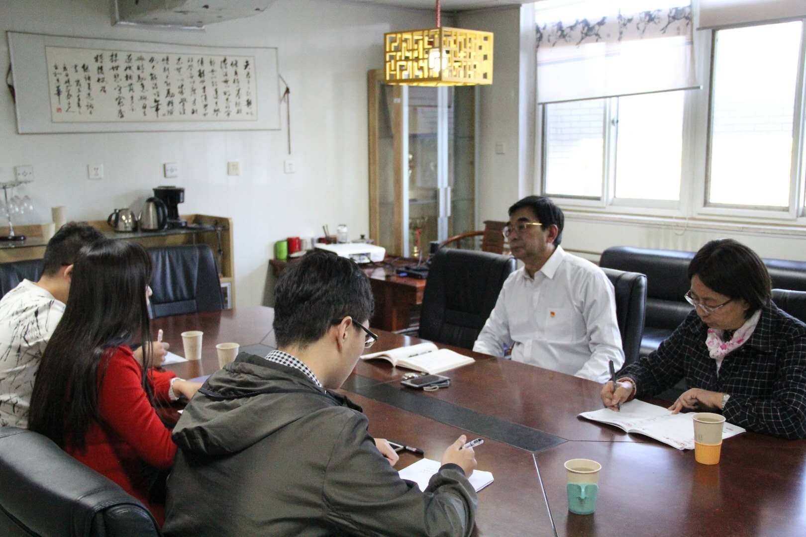 2018年10月17日下午3:30,在实验楼A座427室,校党委书记杨军就园艺本科生党支部的工作与支部委员进行了交流,并就党支部申报的党建课题“党团班共建”工作机制进行了指导。