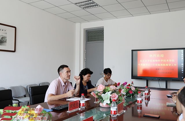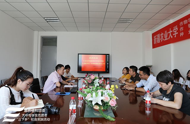 2018年8月26日上午,“展望寄情三农,助力科技支农”实践团成员前往新疆农业大学,农学院顾爱星副院长热情接待了一行人,并与实践团成员展开了有关下乡支农及学生培养计划的交流座谈会。
