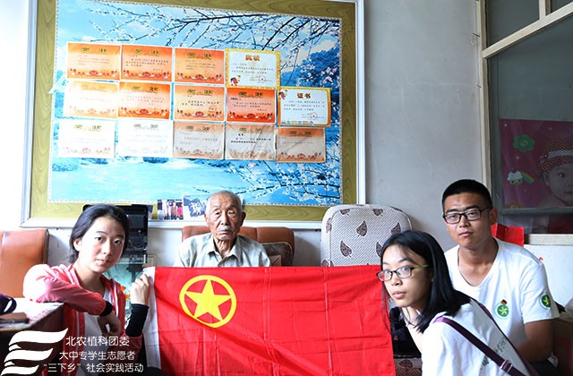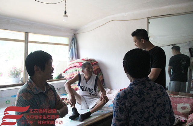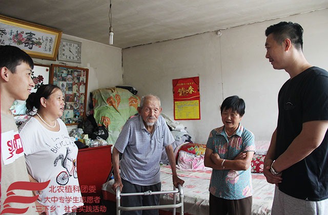 2018年7月28日上午,“北农植科学子,聚力乡村振兴”实践团先后前往杨木栅子乡高栅子村与侯栅子村展开调研活动。在入户调研过程中,我们得知有两位退伍老党员居住于此,牛奔老师、郝娜老师带领实践团成员看望了两位老党员,并送上了一些营养品。几十年党龄的他们,满怀十万分热血,千百万分对党和国家的感情,铸就了贫困老党员成为拥护国家脱贫工作的一员。壮士暮年,老党员本身就是一段历史,热血冲刷了岁月的痕迹,他们不朽的红色精神将被永久地传承下去。随后,我们有幸采访到一位在工作岗位上奋斗了三十余年的村支部书记。他的青春奉献给了乡村建设工作,奉献给了党。奋斗是他一生不变的主题,奉献是他一生恪守的信念。