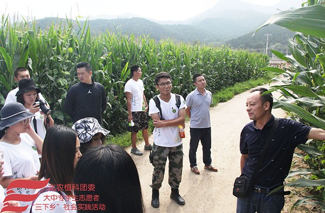 下午,实践团到富贵山村展开调研活动,一同前往的还有土壤营养学刘杰老师和作物学南张杰老师。刘老师就当地环境保护、土壤现状做了简要介绍。南老师以当地种植面积最广的玉米为例,为大家讲解了玉米的生长习性、杂交种的优势、优势植株的特征等。接着,实践团来到富贵山村村委会,从返乡援村村长那里了解到本村的基本概况,该村长从基础设施建设、引进资金带动全村脱贫等方面做了积极贡献。调研组继续深入农户,了解到扶贫政策的落实情况与本村发展现状。