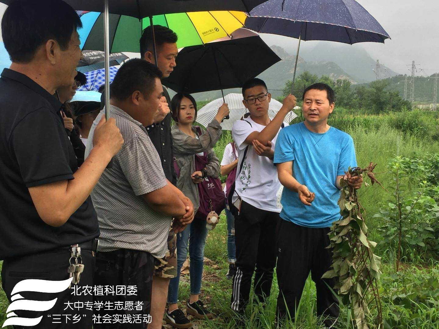 由于该村甘薯种植面积广,但是品种单一,产量不高,甘薯专家赵波老师以当地种植户王瑞强的甘薯种植地为例,带领实践团成员前往种植地进行考察,针对甘薯茎、起垄情况、土壤条件等实际问题提出改良意见。种植户从中得到了很大的启发,来年将尝试改变种植模式,引进新品种,以提高农作物收益。