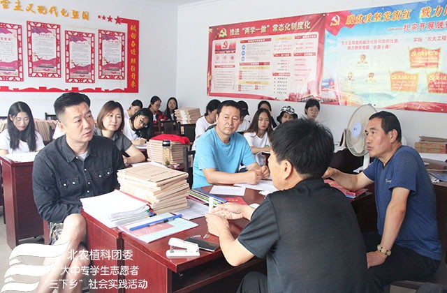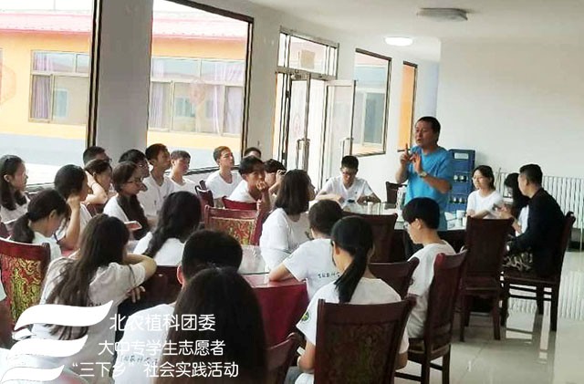 2018年7月24日上午永利23411集团“北农植科学子,聚力乡村振兴”实践团来到了南关乡苏武庙村,实践团在农学系副教授赵波老师,牛奔老师和郝娜老师的带领下与赵书记等村委会成员进行调研座谈,了解本村种植、扶贫情况及农业产业结构。