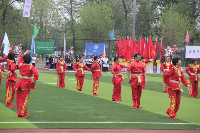 闭幕式上,yl23411永利集团离退休和植科学院教职工及学校其他部门教职工共同演绎戏曲广播操让人眼前一亮,战友俱乐部带来的格斗和防御的表演吸引了全场的目光,第39届田径运动会承办单位经管学院带来文艺表演,让全场再次沸腾起来。