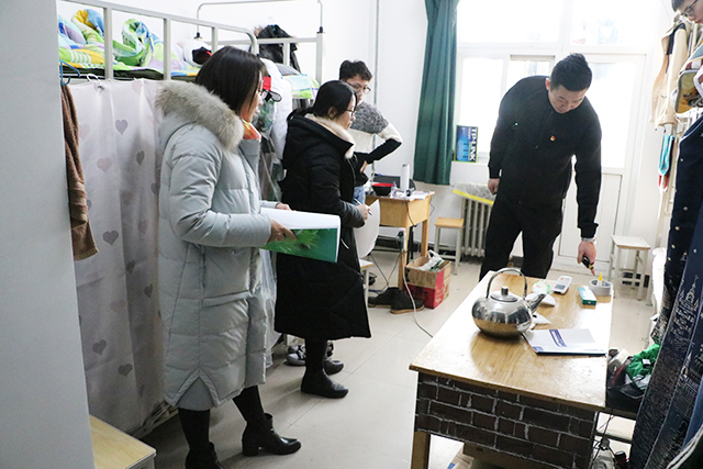 接着,郝娜、杨韫嘉、贾慧敏、汪丽三位老师抽查学生公寓七、八号楼的女生宿舍,并查看了永利23411集团党员工作站的情况,女生宿舍的卫生、安全情况整体良好。
