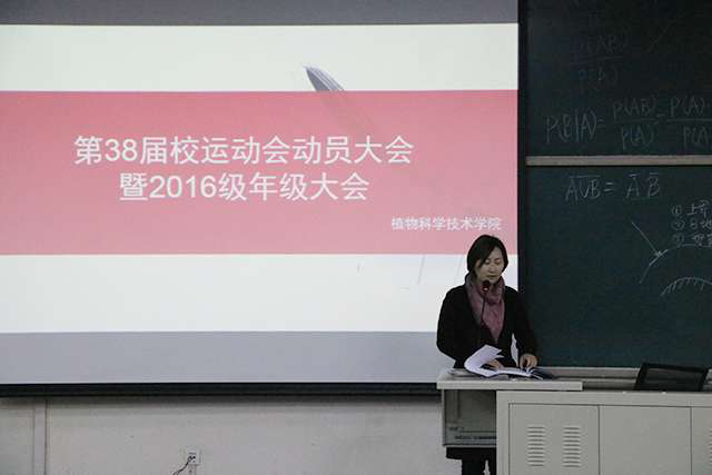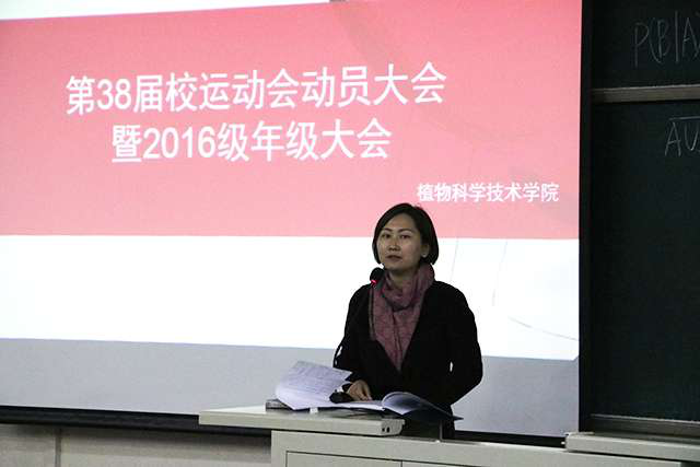首先,郝娜老师鼓励同学们积极投入到第38届校运动会的准备工作中去,更好地展现植科学生的风貌,发扬“奉献、团结、进取、专业”的植科精神, 并宣读了运动会管理规定,鼓励大家积极参与活动,为运动会贡献自己的一份力量。