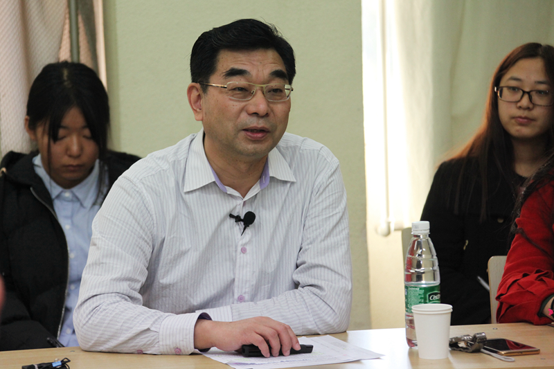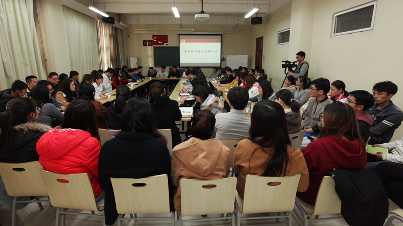 杨军书记对此次座谈的主题作了简要的阐述。“新征程”,即十九大后,中国已进入中国特色社会主义新时代;“先锋队员”正应和了中国共产党的性质。接下来,杨军书记介绍了此次十九大的主题——“不忘初心,牢记使命,高举中国特色社会主义伟大旗帜,决胜全面建成小康社会,夺取新时代中国特色社会主义伟大胜利,为实现中国民族伟大复兴的中国梦不懈奋斗”。杨军书记讲到,作为党员,必须时刻牢记初心与使命。初心,即全心全意为人民服务,为百姓谋幸福;使命,即致力于中华民族的伟大复兴。