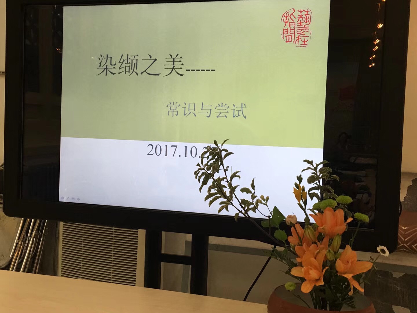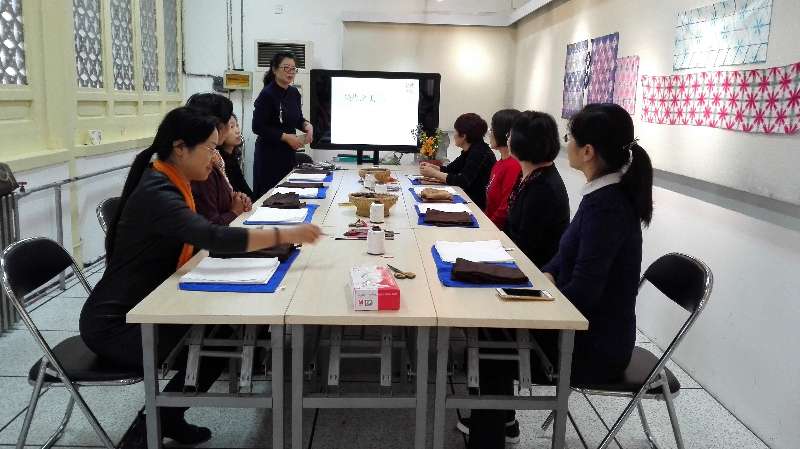 2017年10月27日上午,永利23411集团分工会组织老师们去了北京艺术博物馆学习、体验扎染艺术。上午9点我们到了座落在万寿寺的北京艺术博物馆,博物馆的金老师领我们走进了扎染教室。房间的墙上挂着几幅扎染作品,大桌上摆满扎染工具,小桌上摆着电磁炉和几盆染液。博物馆的王馆长早就做好了一切准备,等候着我们的到来。她先给我们讲解扎染的类型种类、基本制作方法,然后给我们每个人发了一块白色的方形棉布和一块长方形棉布,开始制作方巾与靠背垫。大家立刻穿上围裙,心里无比激动和忐忑。激动的是马上就要亲手独立制作出扎染作品;忐忑的是不知道如何下手才好,担心自己做出很难看的东西。