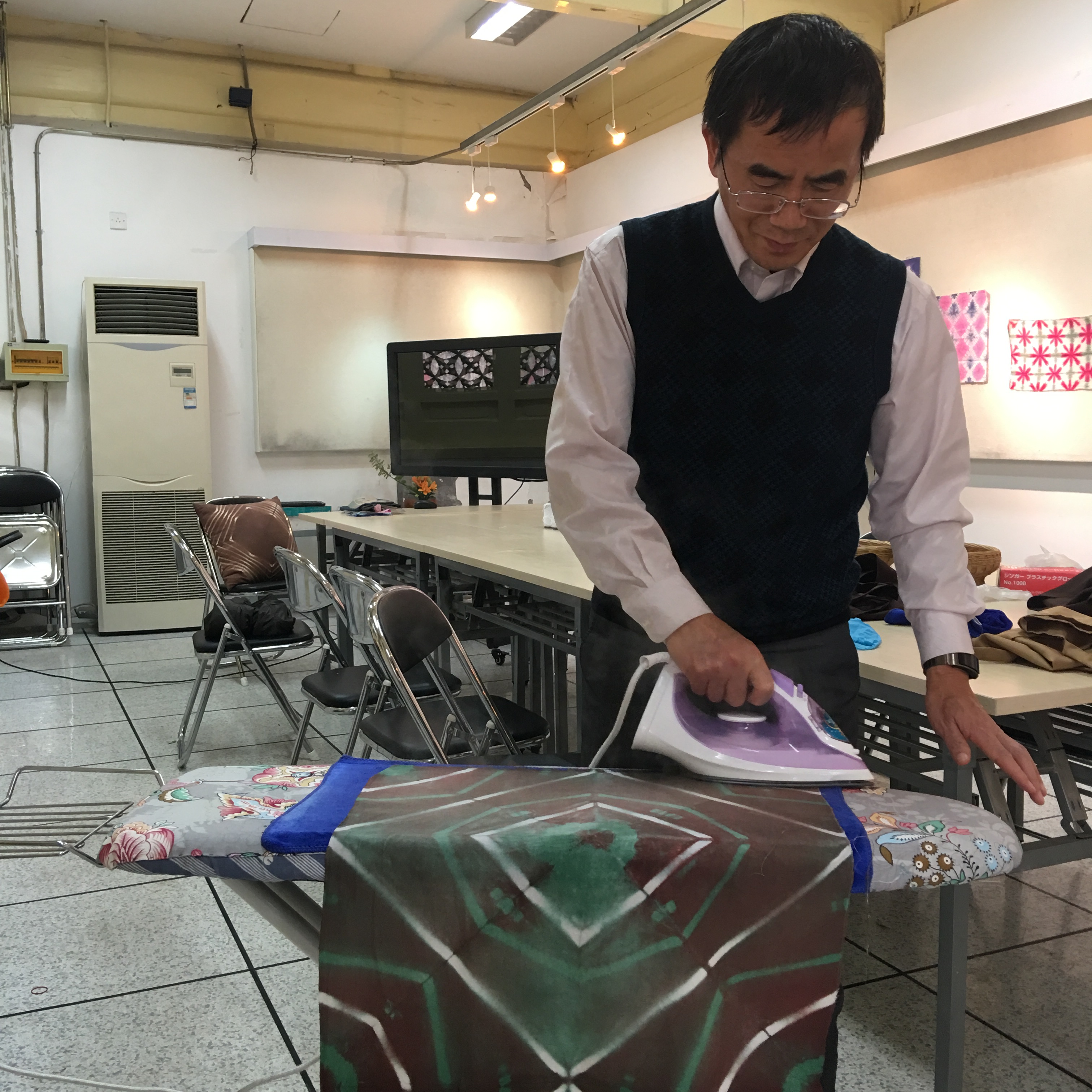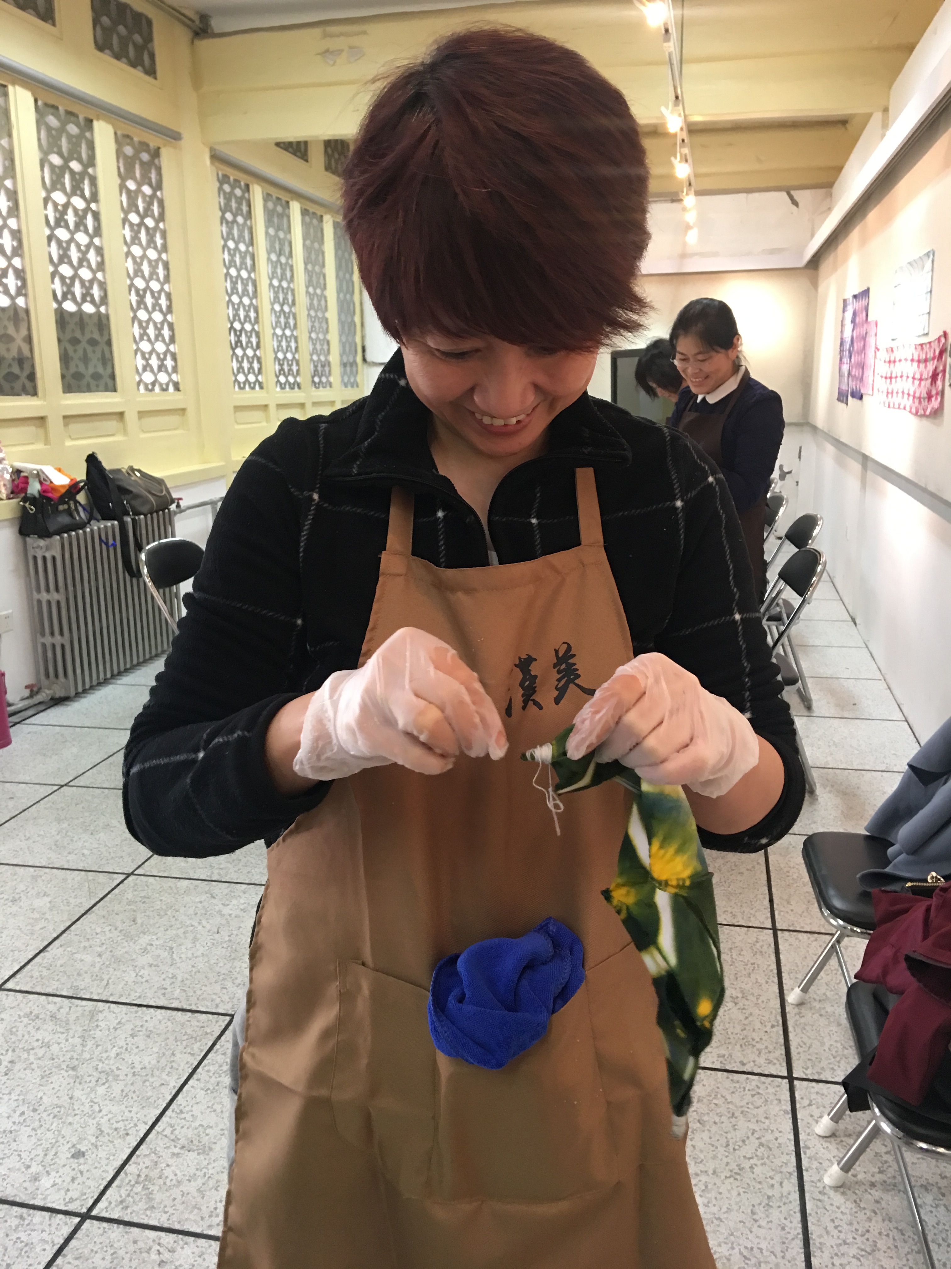 在王馆长的鼓励下,我们开始发挥想像制作扎染作品。