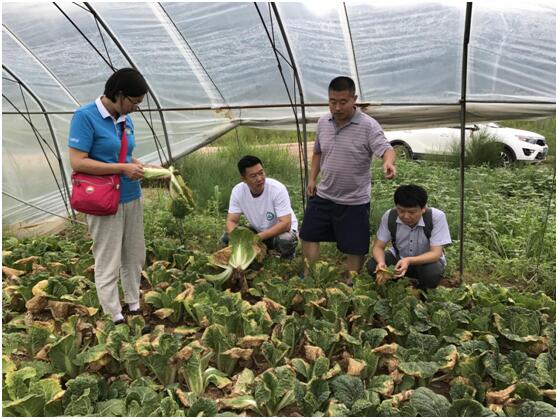 与此同时,王绍辉、王建立、任争光、郝娜四位老师开车历时4个多小时来到实践团驻地,尚未休息直奔蔬菜基地,考察了32个白菜大棚。因一天浇水2次、用喷淋的方法、结球期温度较高等原因,引发了软腐病大面积发生。老师们建议菜农们先将32个塑料大棚清理完毕,所有菜叶杂草清除干净减少病原残留,防止杂草种子落地。清理完毕,将棚膜封严,密闭闷棚。农家肥一定要充分腐熟。闷棚前将农家肥一并放在棚中高温再次腐熟。农民朋友们听后受益匪浅。