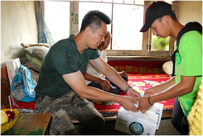 在调研过程中,实践团了解村民情况后得知村内有两位曾参加抗美援朝战争的志愿军老战士。在八一建军节来临之际,为向社会主义祖国建设流过血、拼过命的老战士表达崇高的敬意,牛奔副院长当即带领实践团全体成员前往老战士家中拜访,并为他们带去了蔬菜种子及牛奶,以此来表达实践团成员的敬意。