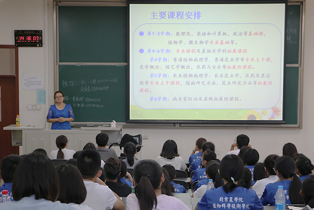 陈艳老师为植物保护(植物医学)专业介绍了课程安排设置,重点课程科目以及就业方向,培养了学生对专业的兴趣。