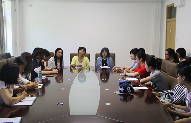 会议开始,尚巧霞介绍了有关英国皇家农业学校留学方向的要求,强调了英语学习的重要性。同学们在认真听讲的同时也在积极思考,主动向尚老师和学姐提出自己的疑惑和不解,得到了尚老师看和学姐的耐心解答。