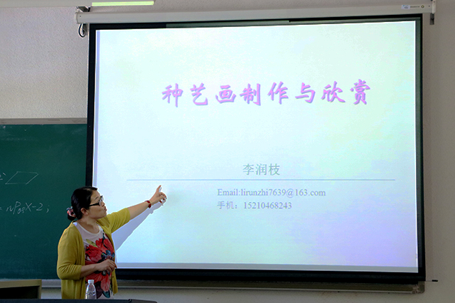 同学们在听完李老师的讲解后,对种艺画有了大致的了解。李老师还给大家展示了往届学生的作品,大家听得兴致勃勃。