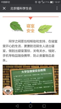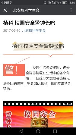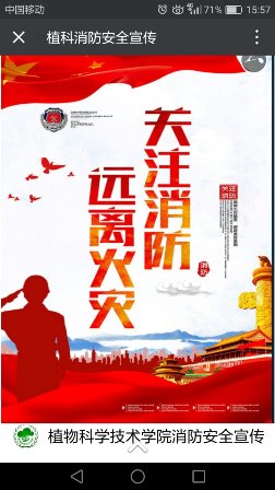 植科学院工会精心制作了一个系列消防宣传小微信,图文并茂,并配有小视频,发布到植科缘和植科通知群,供老师们学习。学生会也完成消防宣传小微信,并发给全体植科学生学习。