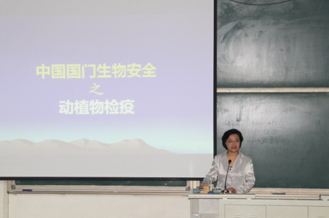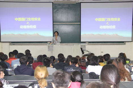 接下来,王慧敏校长开始了课题的讲解。王校长主要从以下三个方面分别进行了讲解:我国动植物检疫的历史、动植物检疫的特点、动植物检疫工作面临的形式和应对措施。历史悠久的我国在检疫方面也经历了三个主要发展阶段,并在发展过程中逐步建立了规章制度、检疫机构,并逐步健全了检疫机构、建立了有关检疫的法律条款。 通过王校长的讲解我们了解到我国检疫的工作范围不断扩大,查验的手段迅速增强。经过此次课程学习,学生们还了解到了当前检疫的形势,并从中体会到了自身所学专业所肩负的责任。王慧敏校长希望在场的每一位同学都能通过所学专业肩负起国家的责任,做一名优秀、向上的合格大学生。