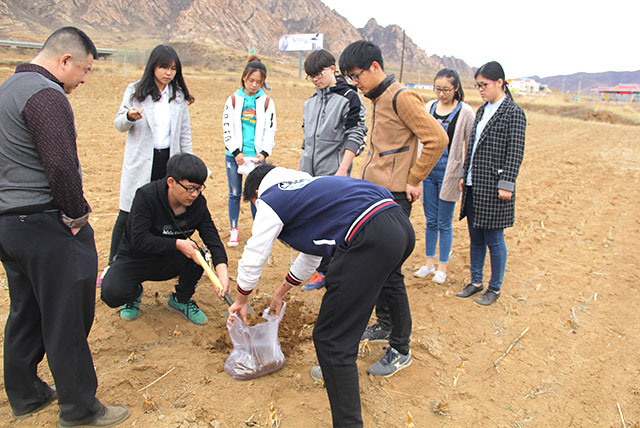 中午略作调整后,实践团便赶往种植地挖土取样。根据南关乡的需要选取了中药材,小番茄,西兰花等种植地,采用科学方法进行取土之后计划带回学校进行成分测量,从而分析数据提出对南关乡产品种植的建议。在取样期间,党支部的学长学姐们和县政府的李楠同志积极的交流了各村的耕种情况并思考解决方案。进行了思想的碰撞,也让实践团更加了解南关乡的需求。