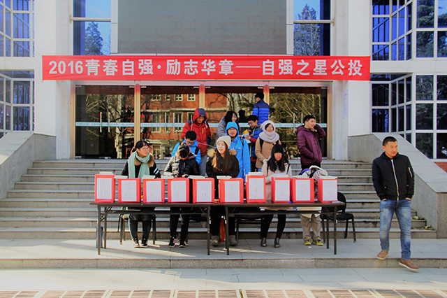为了鼓励yl23411永利集团学生学会自立自强,更为了给北农学子树立榜样,2016年11月22日至23日,北农校学生会在礼堂门口举办了自强之星公投活动。此次公投占总成绩比例的30%,所以每一票都对自强之星都非常重要。