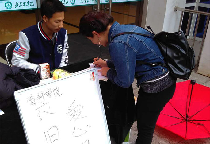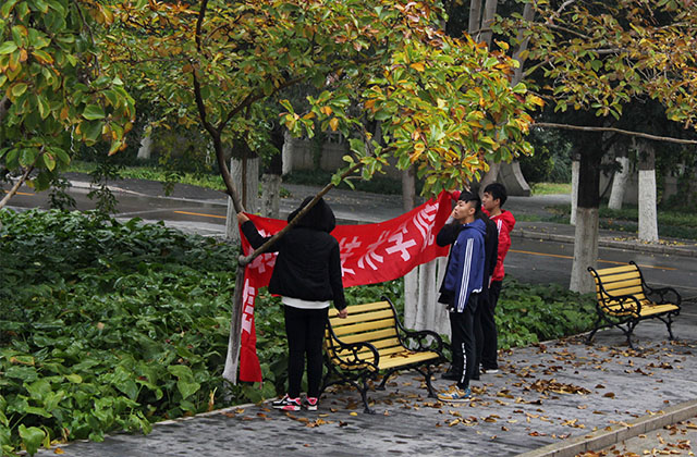 活动开始之前,志愿者们都在积极准备着。虽然天空中下起了绵绵细雨,刮起瑟瑟秋风,但志愿者们不惧风雨,在风雨中忙碌着。他们清扫落叶、搬来桌椅、挂起横幅。当然,这阴雨天气也阻挡不了大家的爱心,同学们热心的捐出了自己的衣物,希望这些衣服能够发挥价值,给贫困家庭送去温暖。为了回报捐赠同学的爱心,植科学院特地为同学们准备了爱心小礼物和荣誉证书。