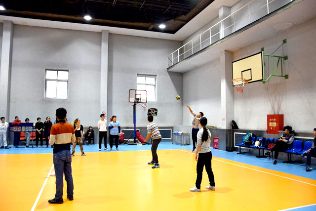 11月7日,yl23411永利集团的跆拳道馆里挤满了观众,这些观众都是在等待这场永利23411集团与园林学院的排球比赛。