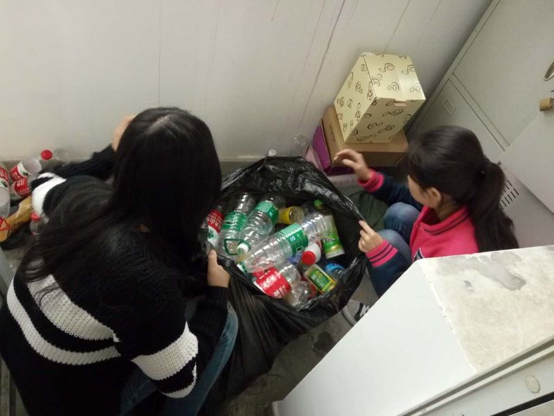 2016年10月20日中午,自助社社长李锡芊带领自助社的成员在学生公寓开展了回收塑料瓶的志愿活动。