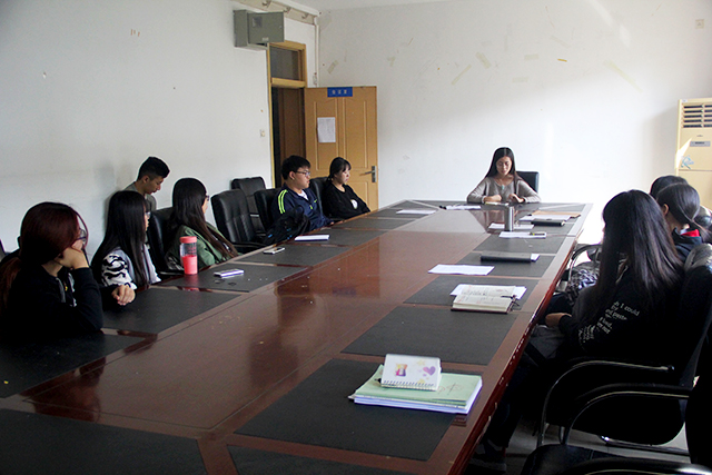 首先,陈馨蕊向各位同学讲述了一个关于与上级沟通的小故事,就故事引发同学们对工作中如何与上级沟通的思考,并鼓励大家积极思考、发言。最后,陈馨蕊向大家讲述了学生干部完成工作过程中与上级沟通的几点注意事项,即:及时沟通、随时汇报;汇报精炼、突出重点;注重汇报对象等。