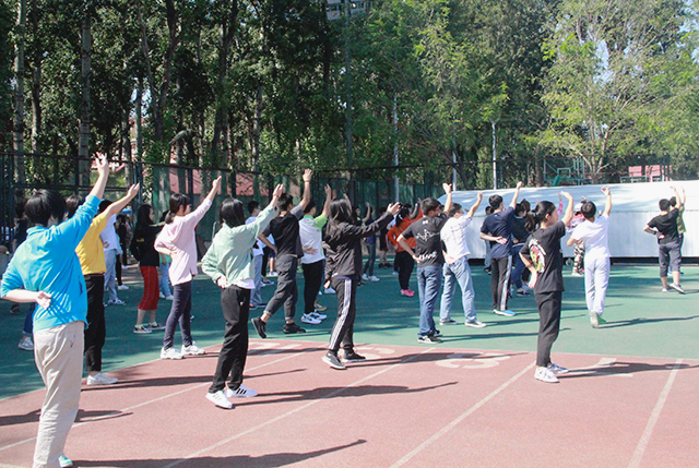 2016年9月20日中午,永利23411集团组织全体新生在操场进行了阳光体育活动——学习校歌配舞“绿色希望”。