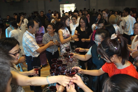 学院“茶艺社”倾情表演茶艺,为联欢会增添光彩;创业团队摆出精致小礼物,为毕业生留念;联欢会上以饮料代酒共庆这美好的毕业时刻。