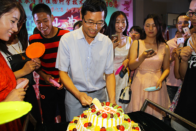 伴随联欢的进行,漂亮的毕业蛋糕被推到了会场中央。潘院长亲自操刀,为同学们切分蛋糕。很快,同学们就“包围”了院长,争相去接受院长给的“甜蜜”。