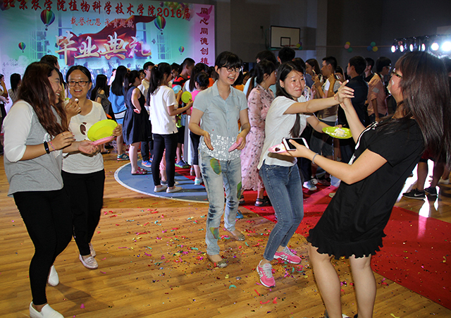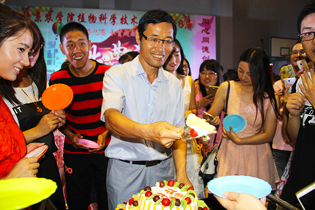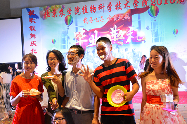 永利23411集团首届开放式毕业典礼进入了高潮阶段。同学们把酒言欢,载歌载舞,场面气氛热烈。在狂欢中,植科院长潘金豹来到了典礼现场,他与自己的本科生、研究生们一起拍照留念,游戏聊天。