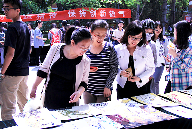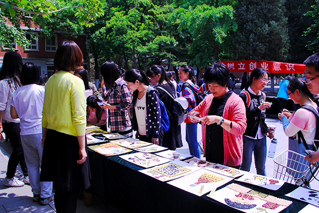 投票开始前,学生会部分干事以及辅导员郝娜早早地来到礼堂布置投票现场,搬运桌子、摆放数几十种作品、给种子画编号等准备工作。投票活动期间,干事们都热情的请过往的老师和同学们来参与投票,并认真的讲解活动内容及相关投票事项。大多数师生对摆放的种子画作品赞不绝口,更有很多在现场欣赏的老师和同学门投出自己宝贵的一票。