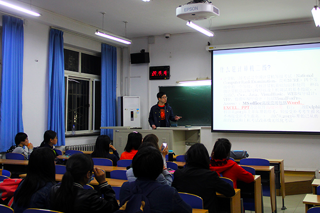 2016年4月7日星期四,永利23411集团在教学楼A座106教室举办了计算机二级资格证书培训交流的学生沙龙活动,主讲人是2013种子班的林靖晨和张凌霄,他们已顺利通过了计算机二级考试。