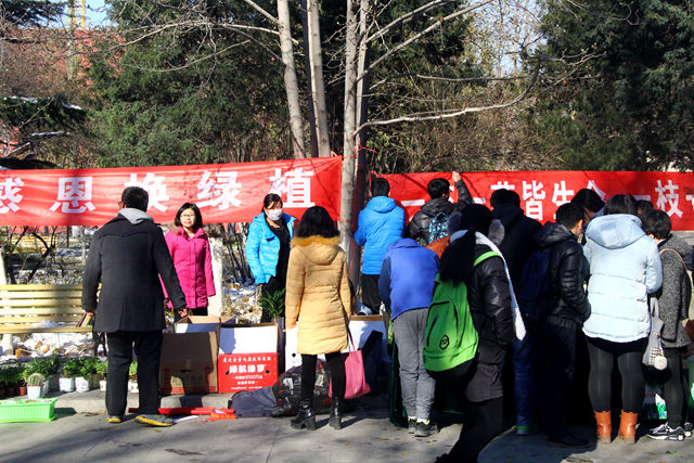 活动摆出的绿植吸引了众多师生,大家都纷纷带着空瓶、废旧电池和旧书来到礼堂门口兑换绿植。即使冬日的空气中透着丝丝寒意,却依旧阻挡不了同学们用废弃物换绿植的高涨热情,大家的脸上都洋溢着开心的笑容。