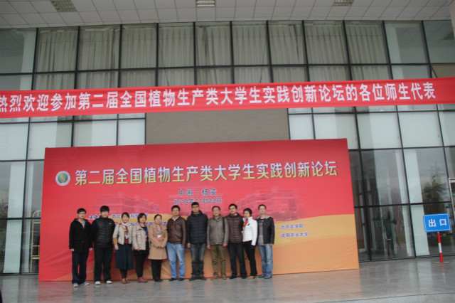 为了加强全国植物生产类大学生实践创新成果的交流和展示,促进植物生产类国家级实验教学示范中心与各相关单位的联系与合作,共同分享成果和成功经验,第二届“全国植物生产类大学生实践创新论坛暨大学生创新创业训练计划成果展会” 于2014年11月21-23日在陕西杨凌西北农林科技大学北校区绣山活动中心召开,大会由西北农林科技大学承办,我校永利23411集团永利集团副院长赵宇昕、农学系主任谢皓、资环系主任段碧华、植保系书记张爱环以及部分相关专业教师与学生代表一行9人前往观摩,同时谢皓教授担任论坛的专家评委。