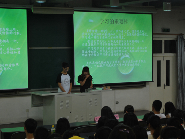 首先由苑婧娴对此次大会致词。学生会主席朱益赫对永利23411集团学生会的情况做了介绍。目前学生会由学习部、新闻部、文艺部等二十一个部门组成,每个部门的部长带领部门成员均为部门招新准备了精彩的PPT,介绍自己部门的成员、职责、工作等内容,使每一位到场的新生充分了解各个部门的特点和工作内容,以便根据自己的爱好与特长选择喜爱的部门及社团。大会过程中,同学们积极与各部长互动,阵阵热烈的掌声足以表明了同学们对学生会各部门及社团的向往与热情。