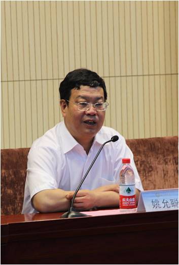 副校长姚允聪发言,向获奖者表示祝贺,并对毕业生寄予了希望:他希望每一位毕业生在以后的工作、生活中要做到以下几点:爱国爱家、勤劳奉献、目标明确、创新务实、坚强执着、言行一致。从国家、学校、家庭、个人多方面阐述了“内聚合力,外塑形象”的重要性,“内聚合力”是要全力提高个人的道德素质,“外塑形象”是要行为语言得体,塑造良好的个人形象,两点是做人之本、生存之本和进步之本。最后,姚校长祝愿毕业生事业有成,前程似锦。