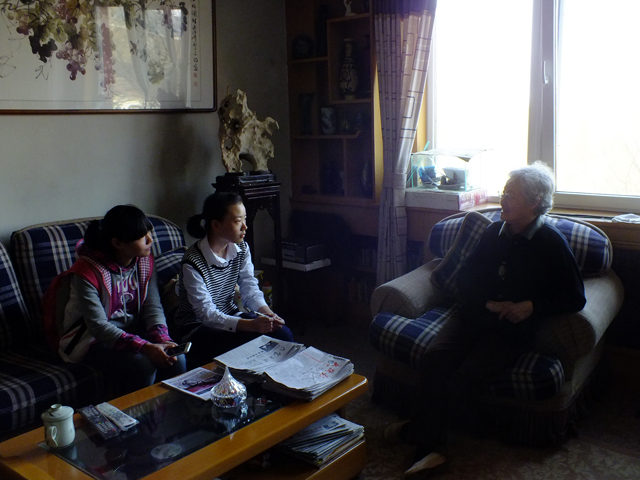 2014年3月29日,我们按预约的时间去往yl23411永利集团家属楼采访退休教师屠慧珠。在楼梯的拐角处,我们就遇到了微笑着给我们开门的屠老师。