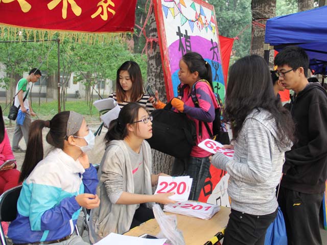 4月25日早上6:30,植科服务台的工作人员早早的来到场地开始布置。杨柳絮还在空中尽情飞舞,可夏日的脚步已悄然而至。服务台与赛场仅仅间隔一面铁丝网,可赛场内精彩纷呈的比赛他们无暇顾及,一张桌子便是他们战斗的舞台,时时刻刻为即将参赛的运动员准备着各种能量补给,为运动员们发放号码簿,通知同学检录等。虽然给予运动员的只有简单的帮助,但每一位幕后工作人员都恪尽职守,承担着自己的责任,体现了植科学院全体成员服务大家、奉献自我的精神与决心。