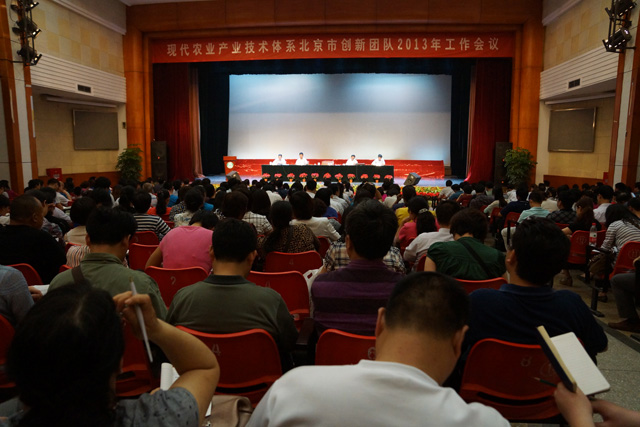 2013年6月13日下午,由北京市农业局组织的现代农业产业技术体系北京市创新团队2013年工作会议在我校大礼堂召开。市农业局局长刘亚清、副局长马荣才、市财政局沈杰处长、市农业局科教处处长程晓仙以及副校长姚允聪等领导参加了此次会议。会议由马荣才副局长主持。北京市8个创新团队的首席专家、岗位专家、综合试验站站长、田间学校工作站站长、首席办公室人员以及各建设依托单位财务人员、专家助手等共计400余人参加了此次会议。