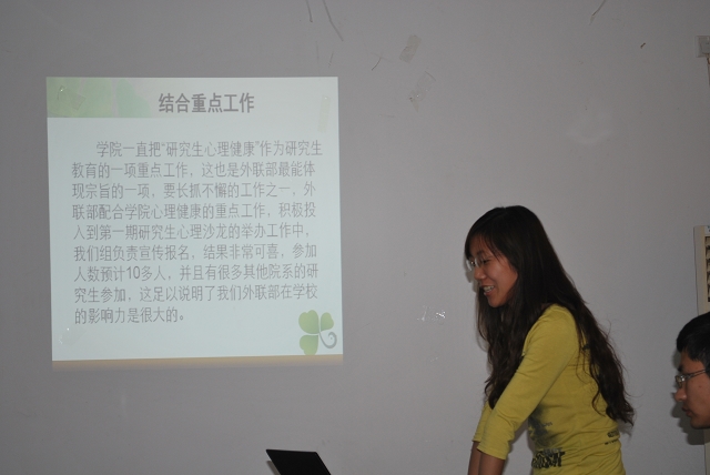 永利23411集团研究生会2010-2011学年工作总结暨暑期实践活动动员大会于2011年6月21日下午16:00时在2号办公楼2015室召开,研究生辅导员贾慧敏老师与会指导。
