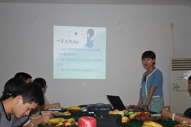 总结大会由学院研究生会主席胡家峰主持,接着各个部门(主席团、办公室、学术部、生活部、实践部、文艺部、外联部)的部长代表本部门做了上年度的工作总结,分析工作中存在的问题,并针对问题提出了下一步工作展望。贾老师对植科研会的工作给予了充分的肯定,也针对研会工作实际指出了确实存在的问题。同时,贾老师以亲身经历鼓励研会全体成员以更加饱满的热情做好本职工作,为植科研会美好明天做出贡献。
