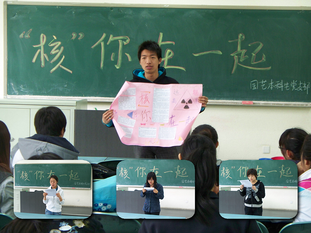 通过“‘核’你在一起”主题的活动,支部成员正确地认识了核辐射,并且,形象而详细地了解了其对人体的危害及保护办法、核辐射的传播方式等知识。另外,在浏览完1957年9月至2011年3月的核电站事故后,支部成员也都陷入了沉思,想到了人类活动对地球家园的影响,保护我们生存的地球家园是义务,更是责任。身为一名学生,一名学生党员,更应该从自身做起,带动周边同学正确认识“核”问题,让我们的地球家园拥有一个美好的明天。