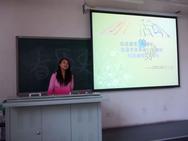 今年正逢建党九十周年、辛亥革命100周年以及我校建校55周年。为了让同学们更加了解党在这九十周年的建设,团组织委员张艳丽详细介绍了1921年7月的建党历程及党旗的符号含义,同时慷慨激昂的朗诵了一篇关于建党九十周年的诗词。团宣传委员郎利新则为大家播放了关于中国人民共和国成立及辛亥革命历程的短片,使同学们对这段历史又有了新的理解。最后由团支部书记杨萌萌为同学们介绍我校建设里程以及所获得的荣誉,使同学对成为一个北农人深感自豪。