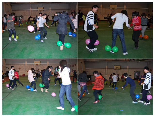 10月24日下午3时,由信息中心技术部精心准备和策划的趣味运动会在跆拳道馆伴随着同学们的热情开始了。比赛规定通过抽签分为黄色、橙黄色、绿色、粉色和蓝色五个小组,这样不仅打破了部门与部门之间的“屏障”。也让同学们认识了更多的新朋友。比赛项目也花样百出,各具特色,有滚雪球、抢凳子、过河拆桥,颠乒乓球跑、踩气球等,整个活动结合了趣味和运动于一身,不仅需要每个人的聪明才智,更重要的是大家的合作精神。让同学们感受到了其中的快乐,也更体会到了“团结的力量”。赛场上中精彩连连,欢笑不断。
