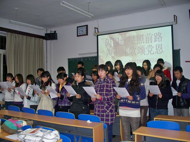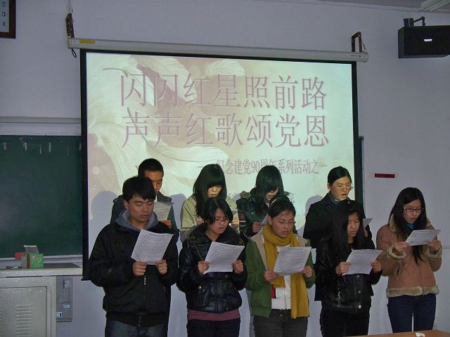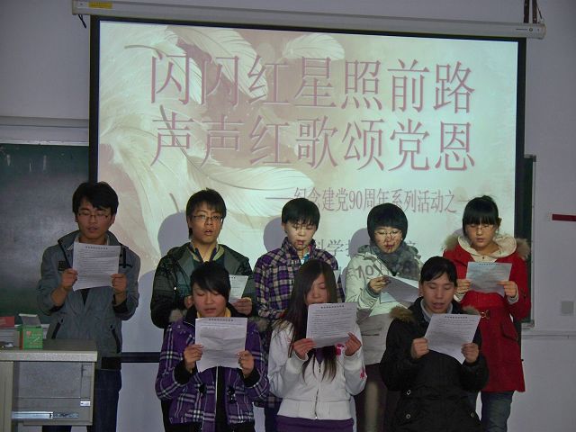 2010年10月28日晚8:20,永利23411集团植保本科生党支部在A103开展以“闪闪红星照前路,声声红歌颂党恩”为主题的活动。