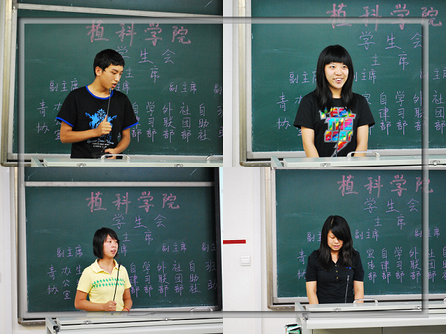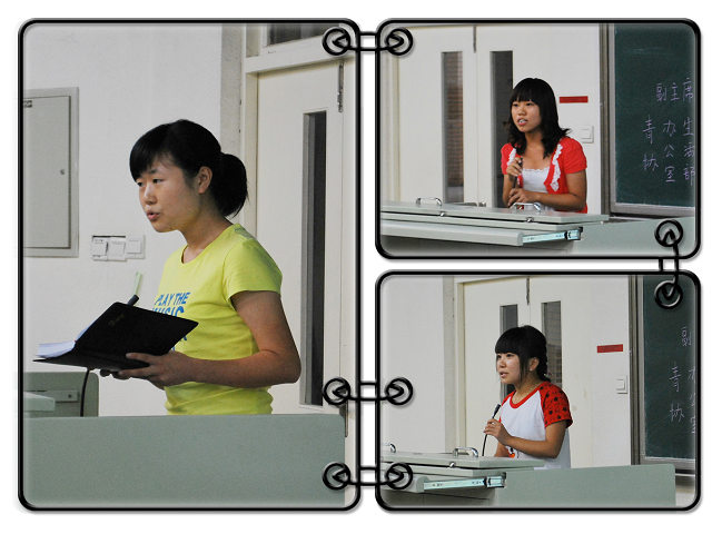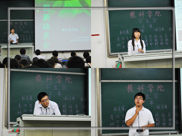 为了让同学们去选择自己所需要所喜欢的部门,了解详细情况,副主席杜景东、张文秋、刘双、任酉濂首先介绍了各个部门的基本情况。各部部长分别上台介绍部门详细工作,大家以不同的方式展示了本部门的特色,整个会场激情洋溢,气氛热烈。
