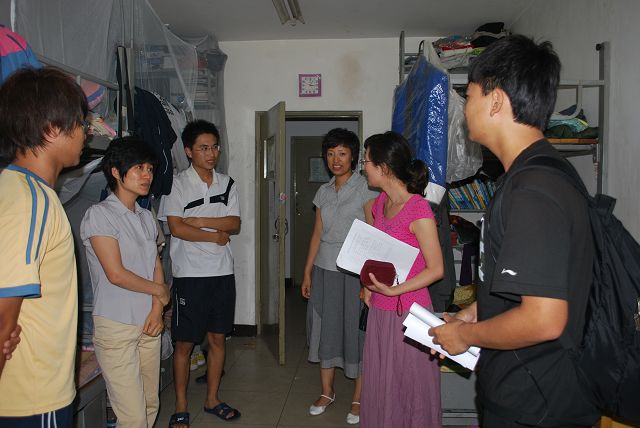 随后赵副院长与辅导员一同到学生宿舍查看安全情况。植科学院副院长赵金芳一行首先来到09级、08级、07级男生宿舍,每到一个宿舍,老师们嘱咐同学们在假期期间注意人生、财物安全, 强调世界杯足球赛期间学校会给同学们安排集体观看时间,希望大家文明观看,同时不能影响期末考试的复习。此外,还对检查中出现的问题进行了具体指导。
